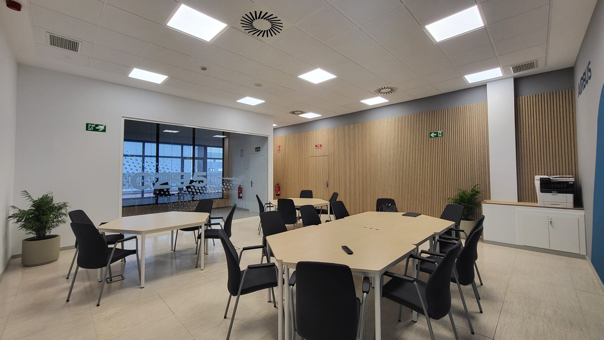 A nivel de instalaciones, se actuó sobre sistemas de saneamiento, fontanería, ventilación y electricidad, incorporando equipamientos con bajo consumo y alto rendimiento, alineados con la estrategia medioambiental de Airbus.